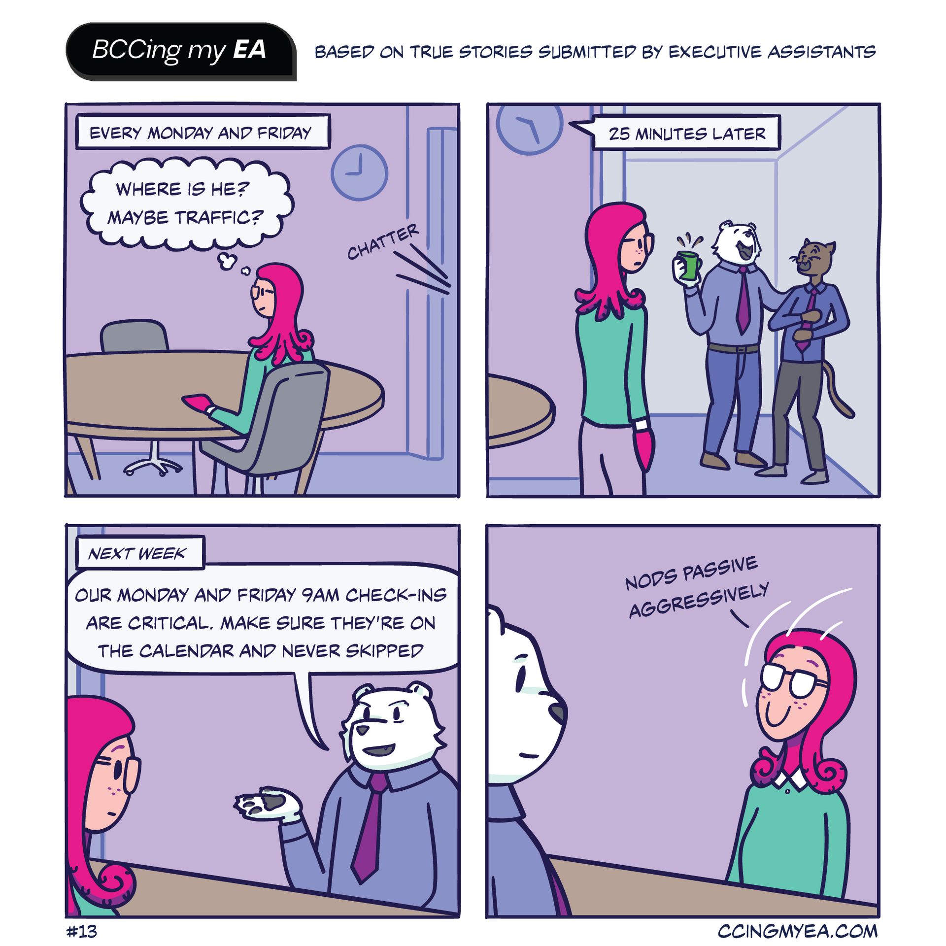 These comics are based on true stories submitted by Executive Assistants retold in a fun, anonymous way.