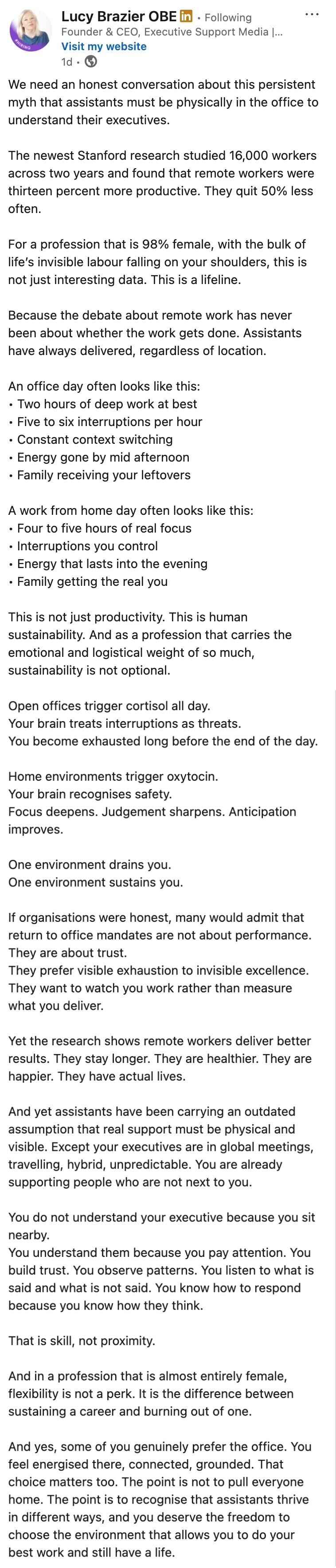 “Remote works were thirteen percent more productive. They quit 50% less often.” is a mind blowing statistic! 🤯