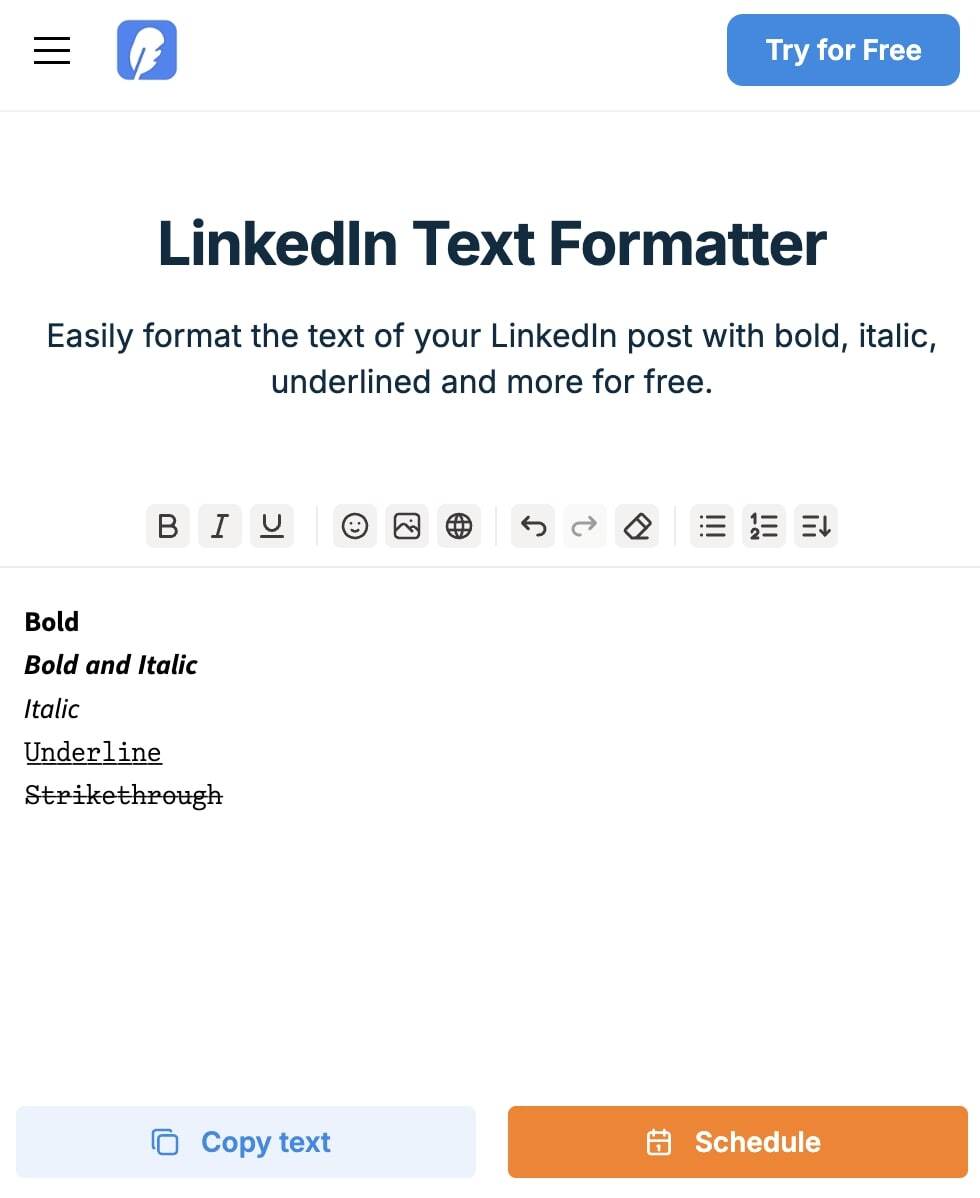 When an app doesn’t support rich text (e.g. LinkedIn posts), you can still “style” a few words using Unicode look-alike characters (what you’re seeing here: 𝗯𝗼𝗹𝗱 and 𝘪𝘵𝘢𝘭𝘪𝘤).