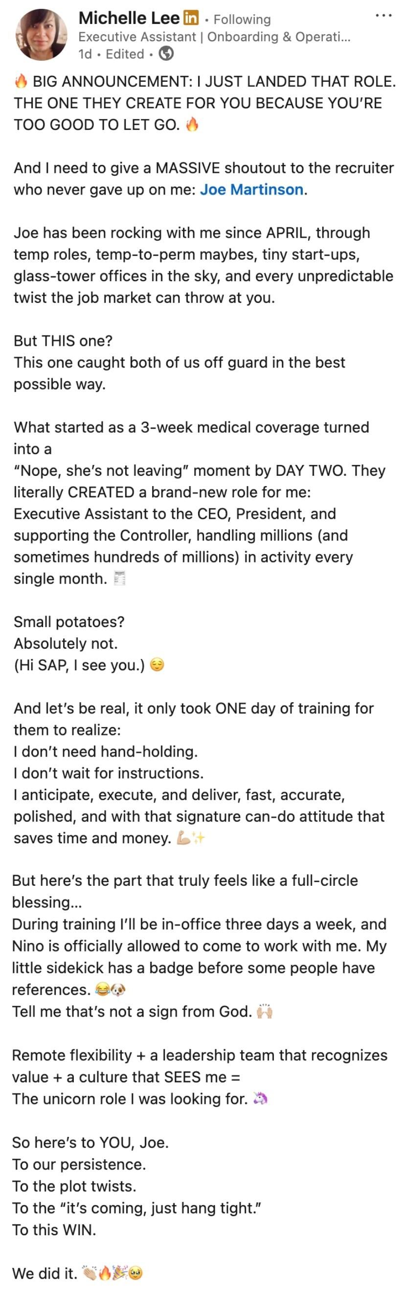 If you’re out job hunting right now I know times are tough, so I’m hoping this success story can bring you a bit of newfound motivation/inspiration. 🙏